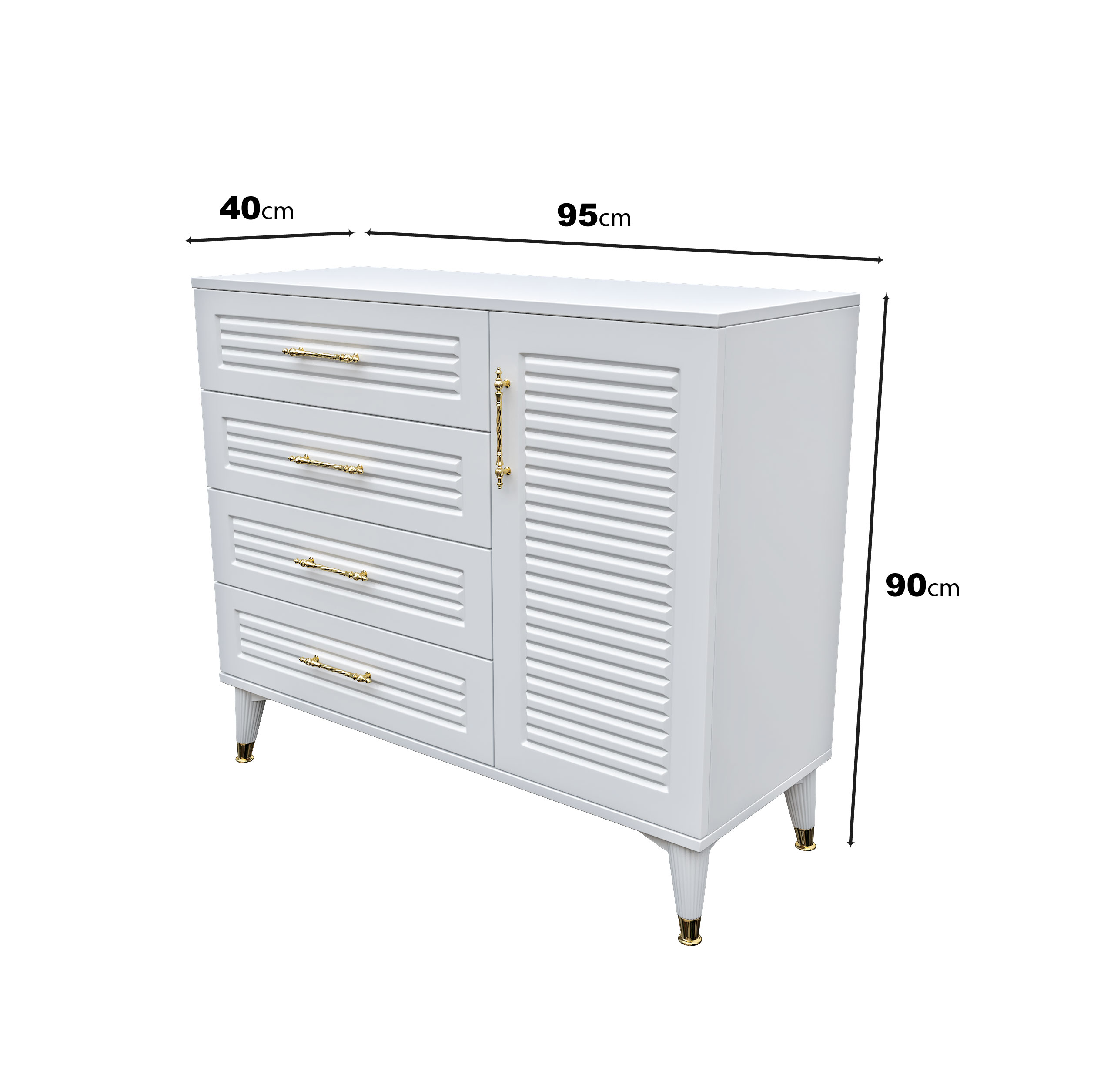 Panjurlu 4 Çekmeceli 1 Kapaklı Şifonyer – Modern Tasarım, MDF Kapak, Beyaz Gold