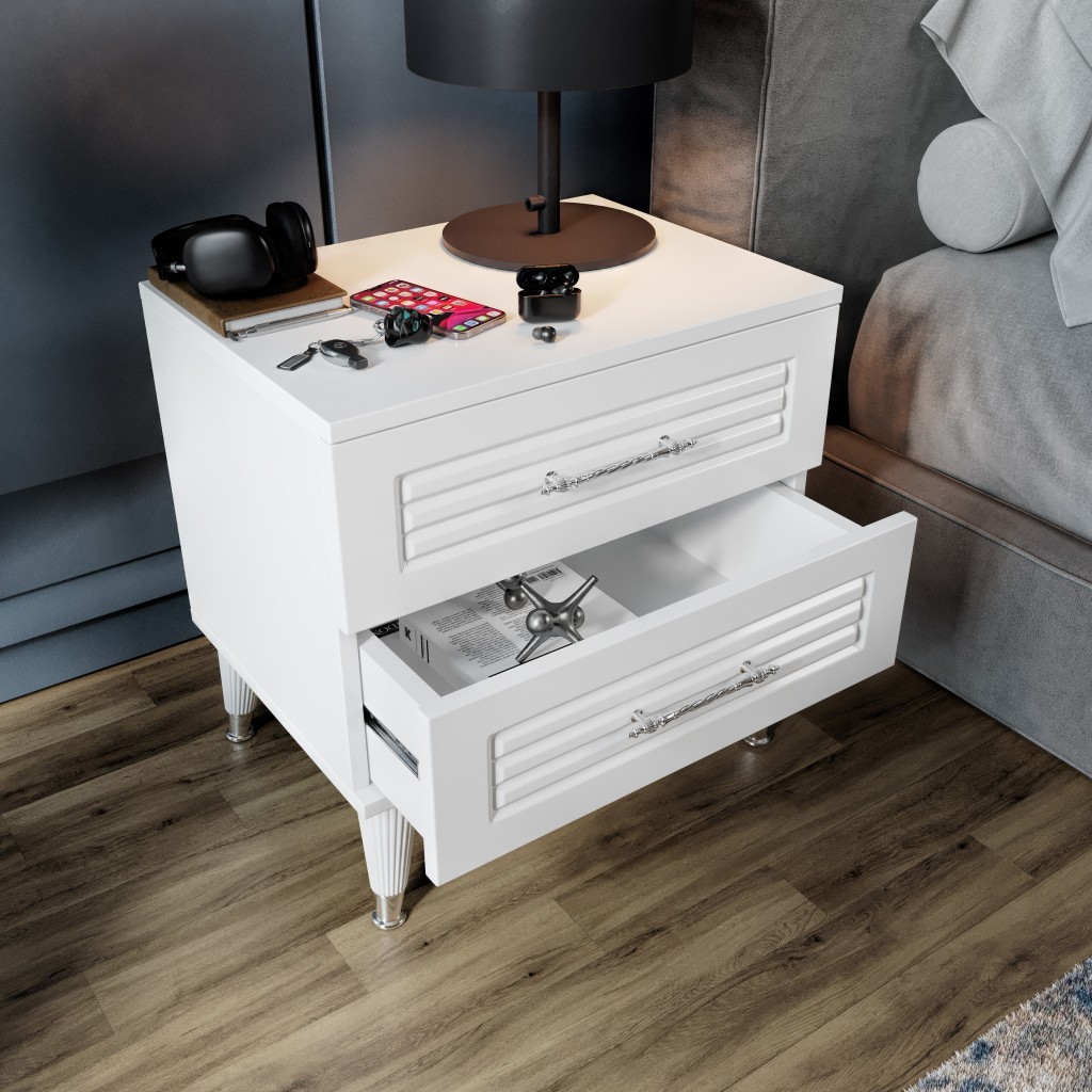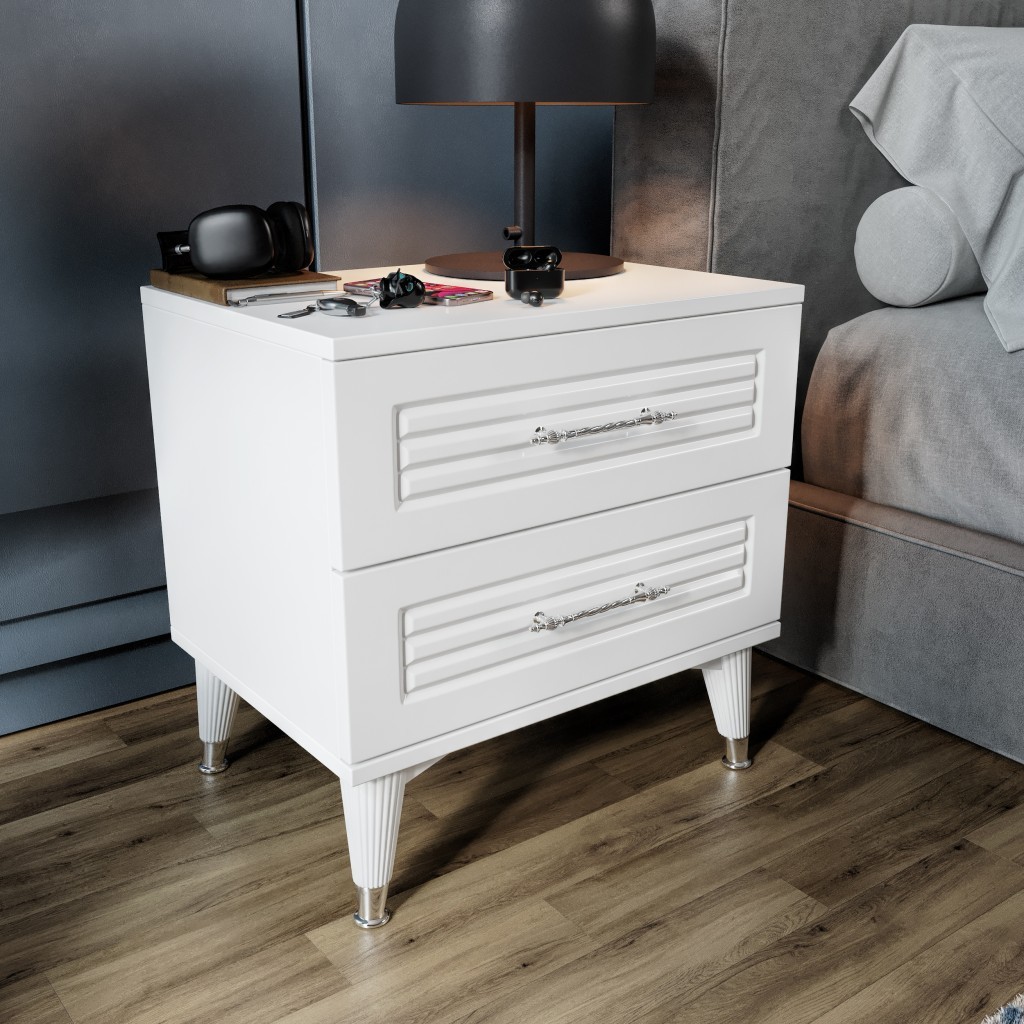 Simple 2 Çekmeceli Komodin SMP5002 Beyaz Gümüş