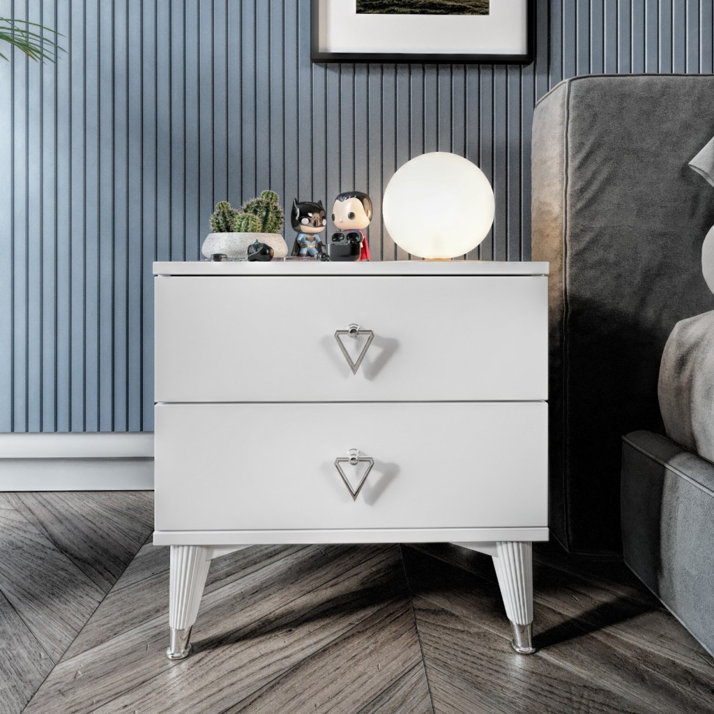Simple 2 Çekmeceli Komodin SMP5002 Beyaz Gümüş