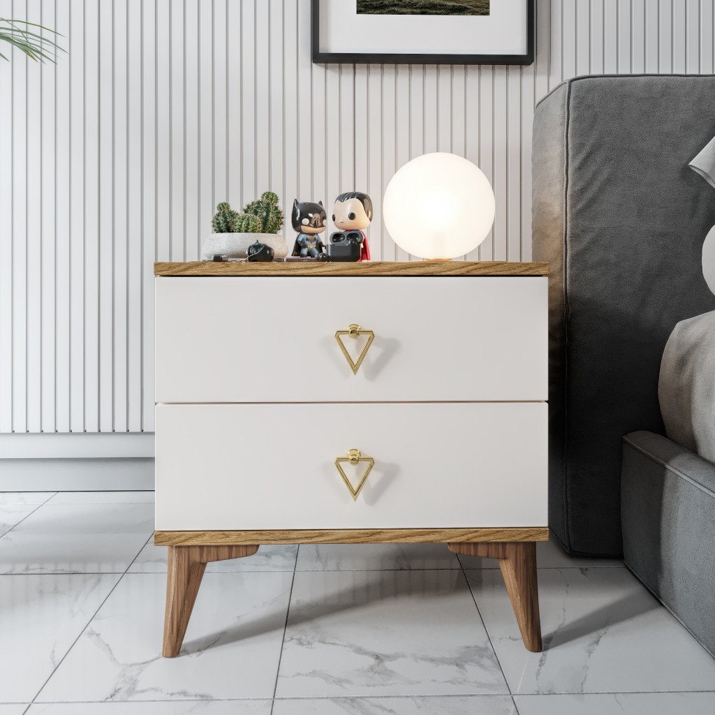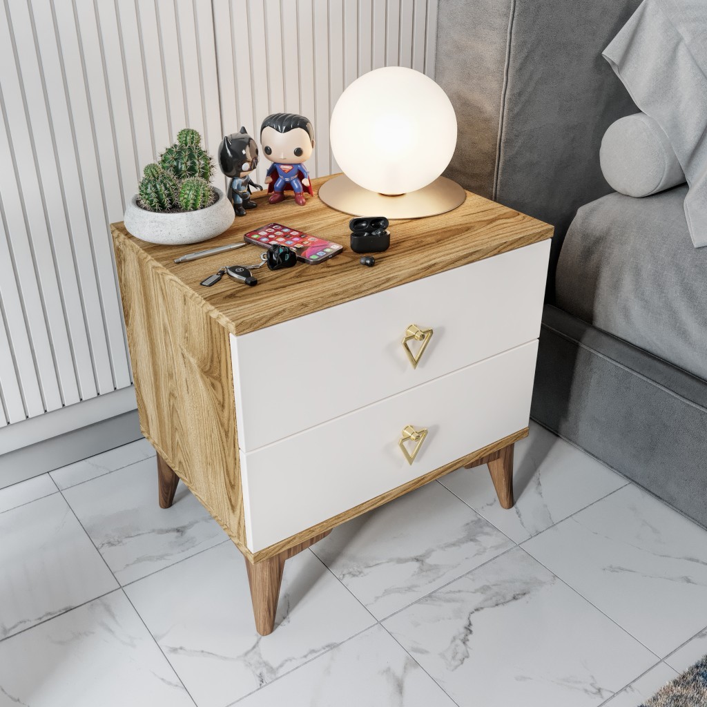 Simple 2 Çekmeceli Komodin SMP5002 Beyaz Gold